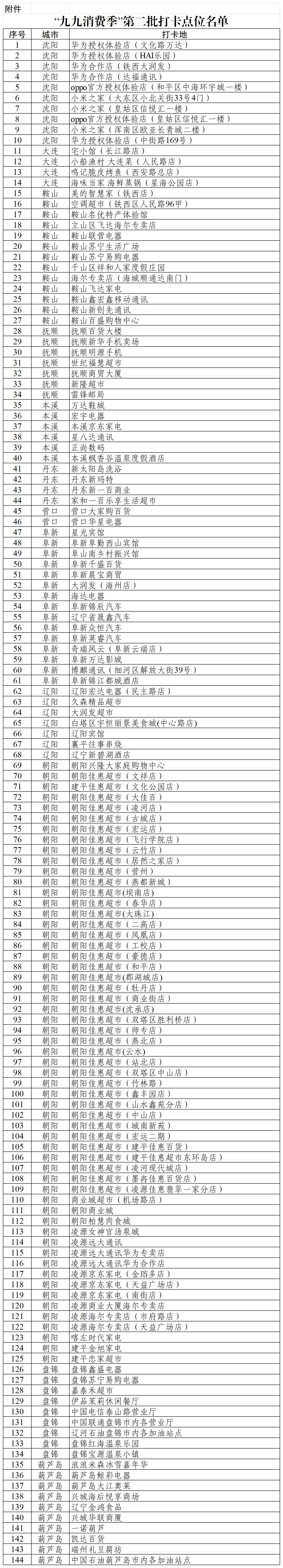 关于开通辽宁“九九消费季”第二批打卡点位的公告